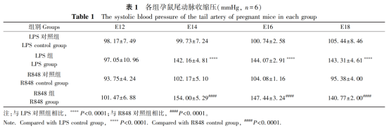 孕鼠尾动脉收缩压